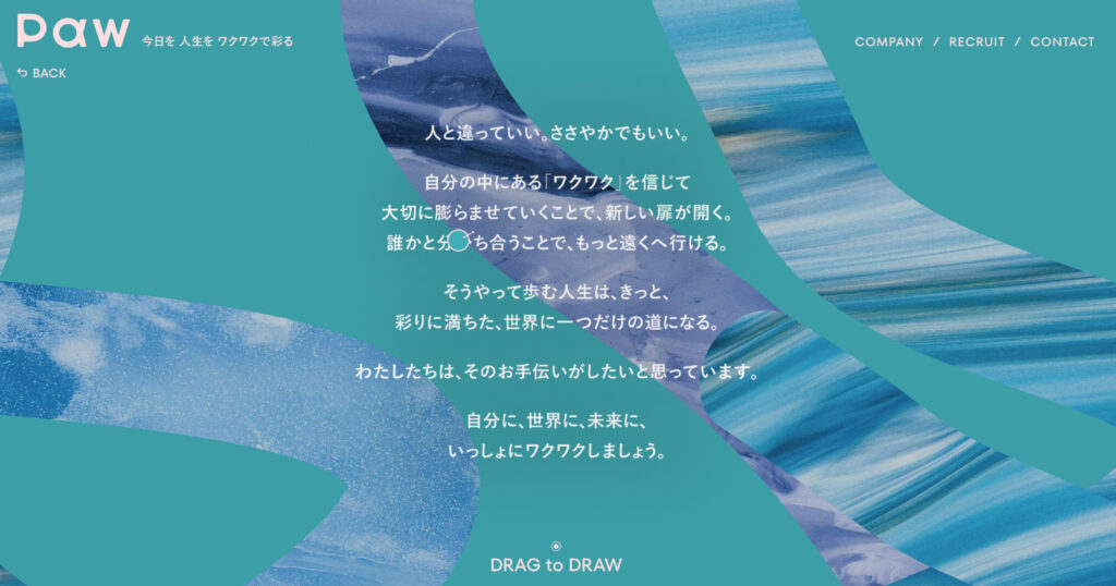 PAW INC.のサイトは、いわゆる「実績を並べて、強みを説明する」タイプのコーポレートサイトとは少し違います。