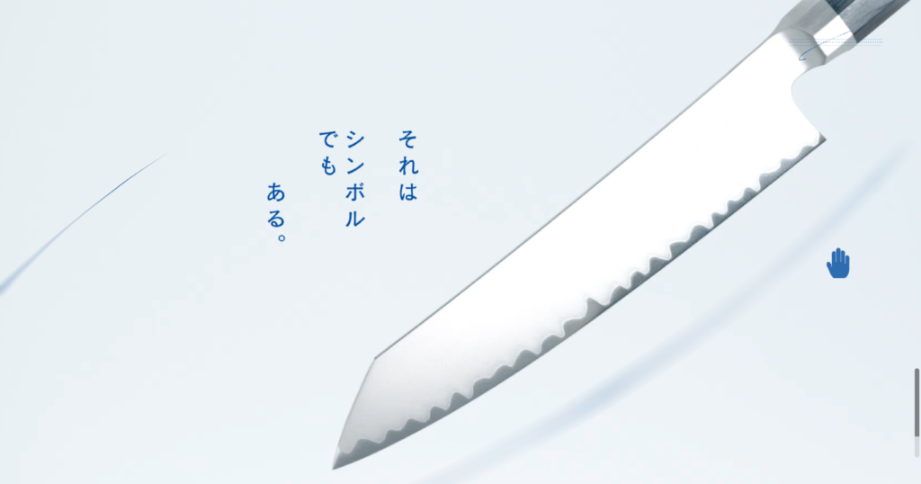 ひなこ:確かに。このサイトのアニメーションは、単に豪華に見せるためではなく、「刃物の鋭さ」や「精緻さ」を表現するために計算されていますよね。