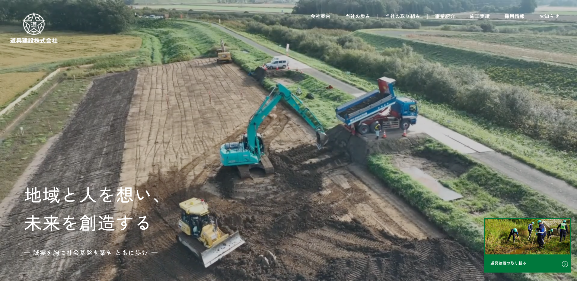 北海道で河川、道路、上下水道、港湾などの社会インフラ整備を担う道興建設株式会社様の、コーポレートおよび採用サイトのリニューアルを担当させていただきました。