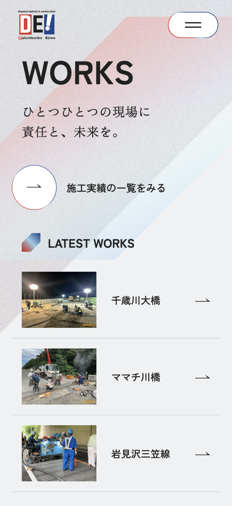 また工法・実績・人の情報を整理し、専門外の方にも直感的に理解できる構成とすることで、採用と信頼の双方に寄与するサイトへとリニューアルしました。